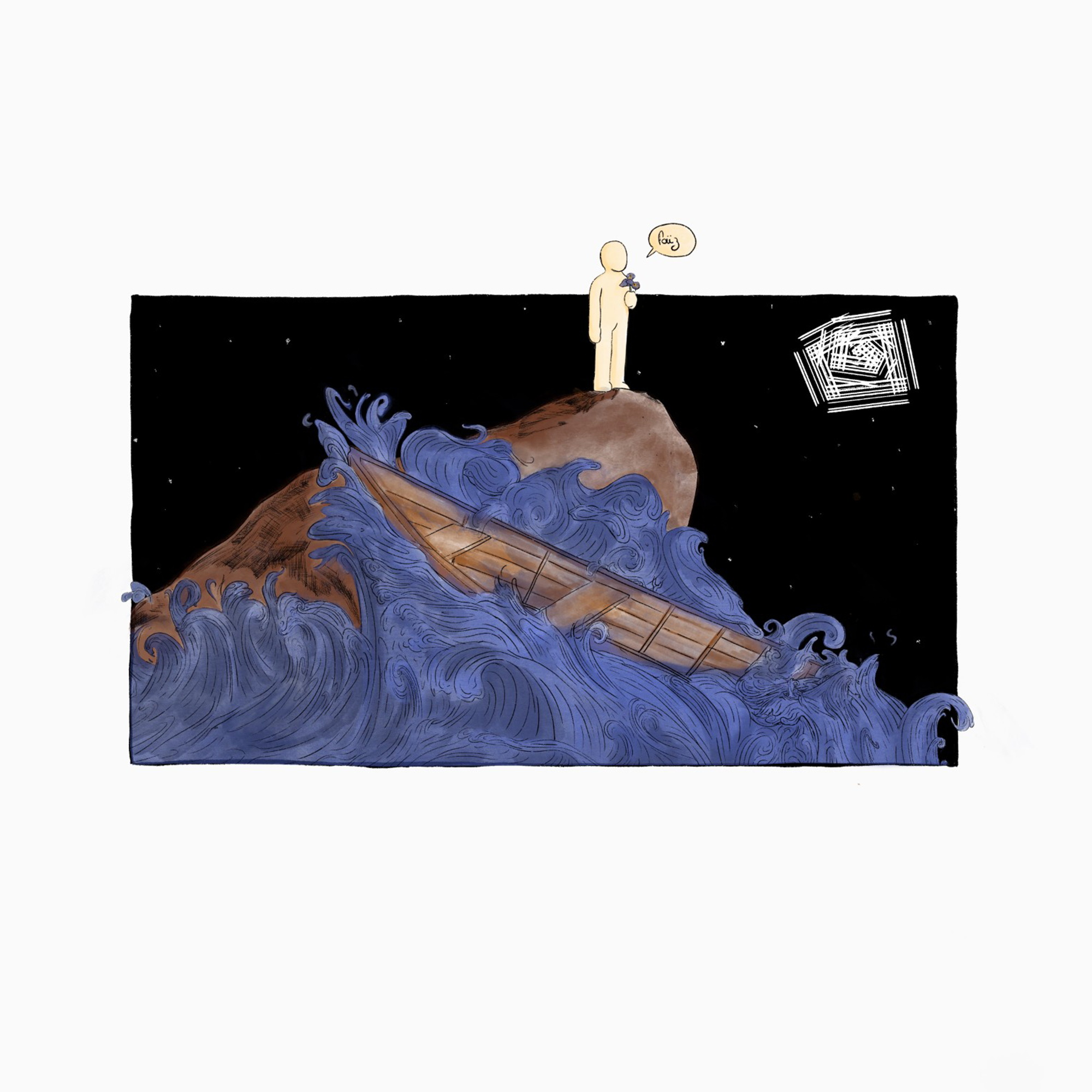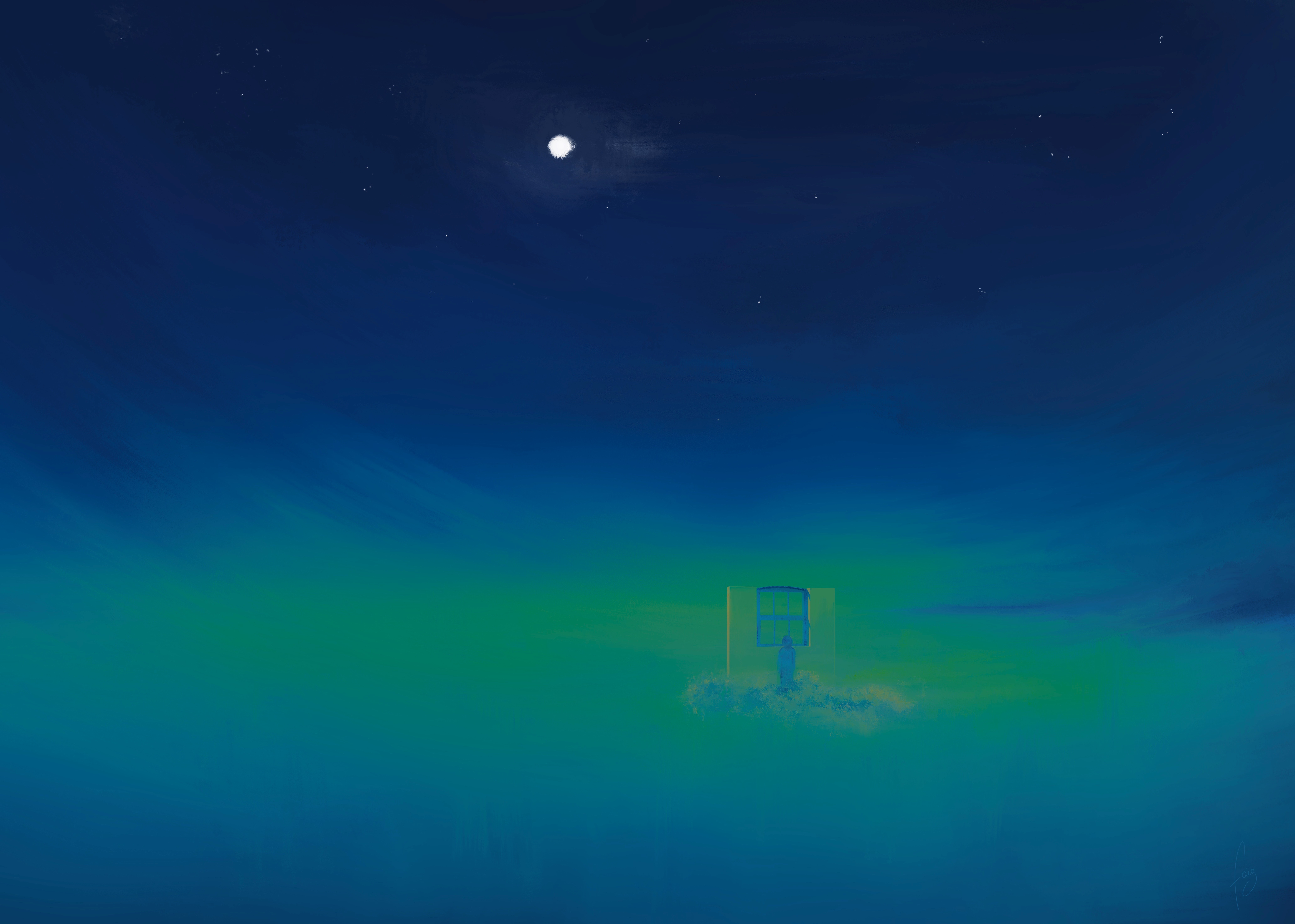 Voyagez là où la nostalgie délicate, caresse les souvenirs et les rêves. Donnant naissance à des tableaux qui résonnent avec les profondeurs de l'être. Cette série d'illustrations vous invite à un voyage introspectif, guidé par un personnage énigmatique, né des frontières entre le rêve et la conscience, aux contours délicats, tel un souffle dessiné, portant en sa structure la candeur originelle. Fantôme des possibles, il erre dans des paysages où la réalité se désarticule et se reconstruit. Ses pas traversent des horizons impossibles, où les lois de la perception se dissolvent comme la brume. Vacillant entre l’inconnu et le familier, c'est une invitation à la rêverie, un appel à la contemplation de notre propre existence au milieu de l’infini.